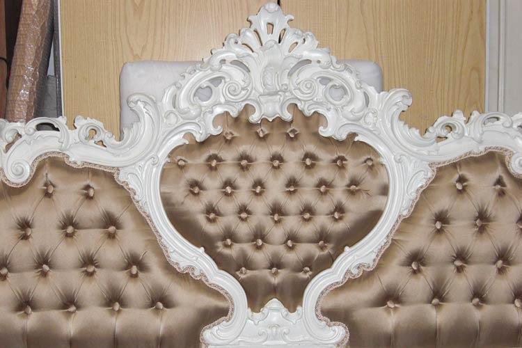 Testata legno intarsiato laccato bianco con inserti in seta doppia misura capitonnè